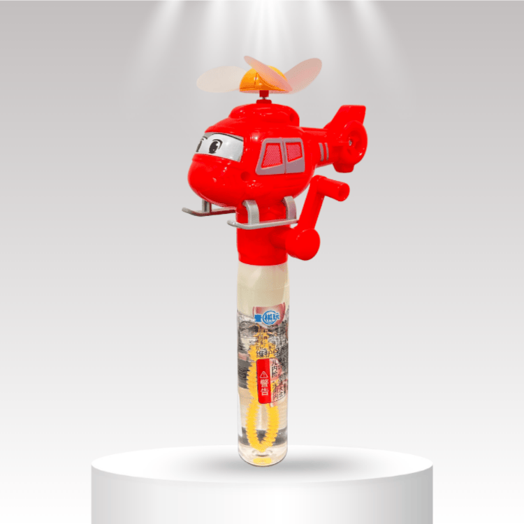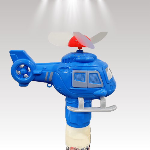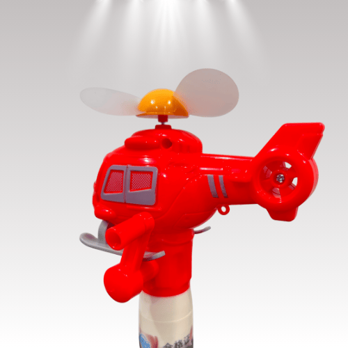 The toy comes with a built-in bubble solution bottle and bubble ring, allowing kids to easily create bubbles by waving or gently spinning the fan. Perfect for outdoor play, birthday parties, park fun, and gift items, this helicopter bubble toy brings joy and excitement instantly.